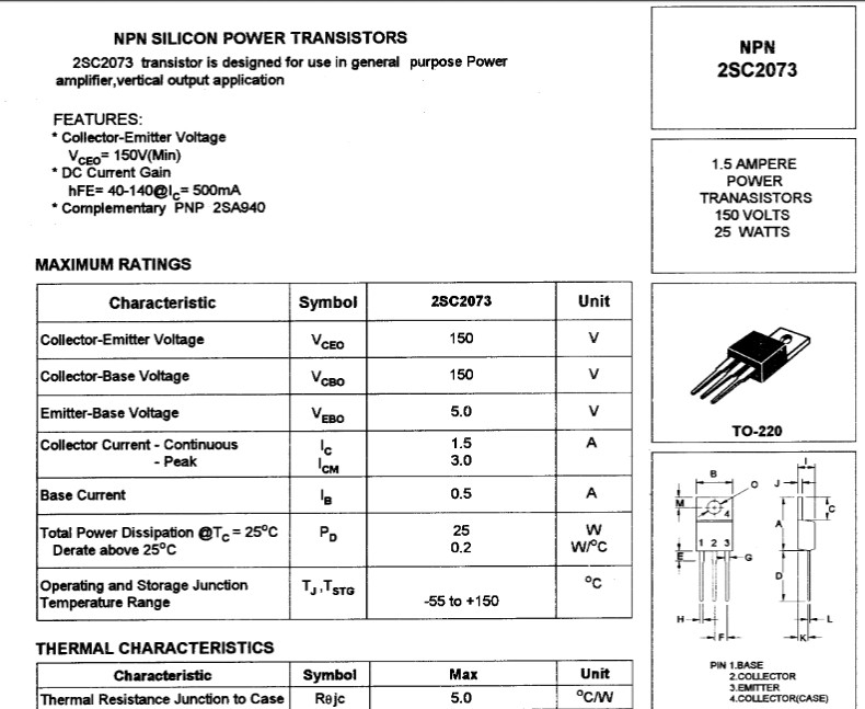 - Điện áp collector- emitter(Uce) tối đa: -150V